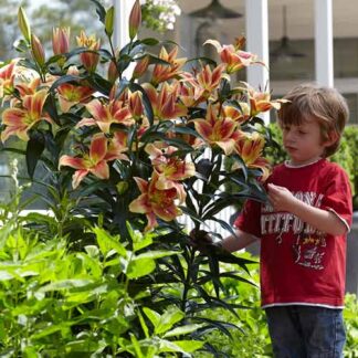 Эта лилия получена в результате скрещивания восточного и трубчатого сорта. От родительской пары растение унаследовало необычный внешний вид и потрясающий аромат. Купить недорого качественный посадочный материал можно в нашем интернет-магазине.