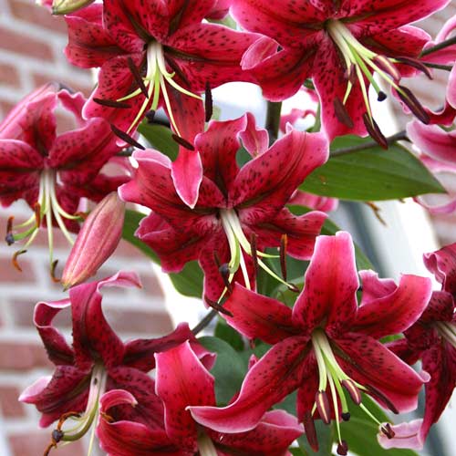 Диаметр приобретенных в питомнике луковиц составляет 12 – 14 см. Из них вырастают длинные цветоносы размером 1,2 – 1,3 м (при качественном уходе 1,8 см). В одном соцветии собрано по 5 – 10 изящных бутончиков, которые смотрят вниз и в стороны. Цветение начинается спустя 100 – 110 дней после посадки (ориентировочно в конце июля-начале августа). Цветки диаметром до 17 см. Высота цветоноса составляет 140 см. Лепестки направлены в разные стороны и украшены красным или белым крапом. Аромат тонкий и ненавязчивый.