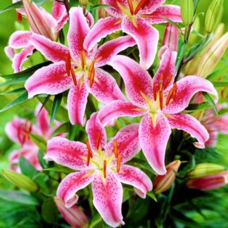 Наш магазин предоставляет широкий выбор лилий на любой кошелек. Мы гарантируем быструю доставку почтой, качественный сервис и профессиональную консультацию по любым вопросам. Транспортировка растений осуществляется в тубусах и горшках, наполненных питательной почвосмесью. Благодаря этому они долгое время сохраняют жизненные силы и презентабельный вид.